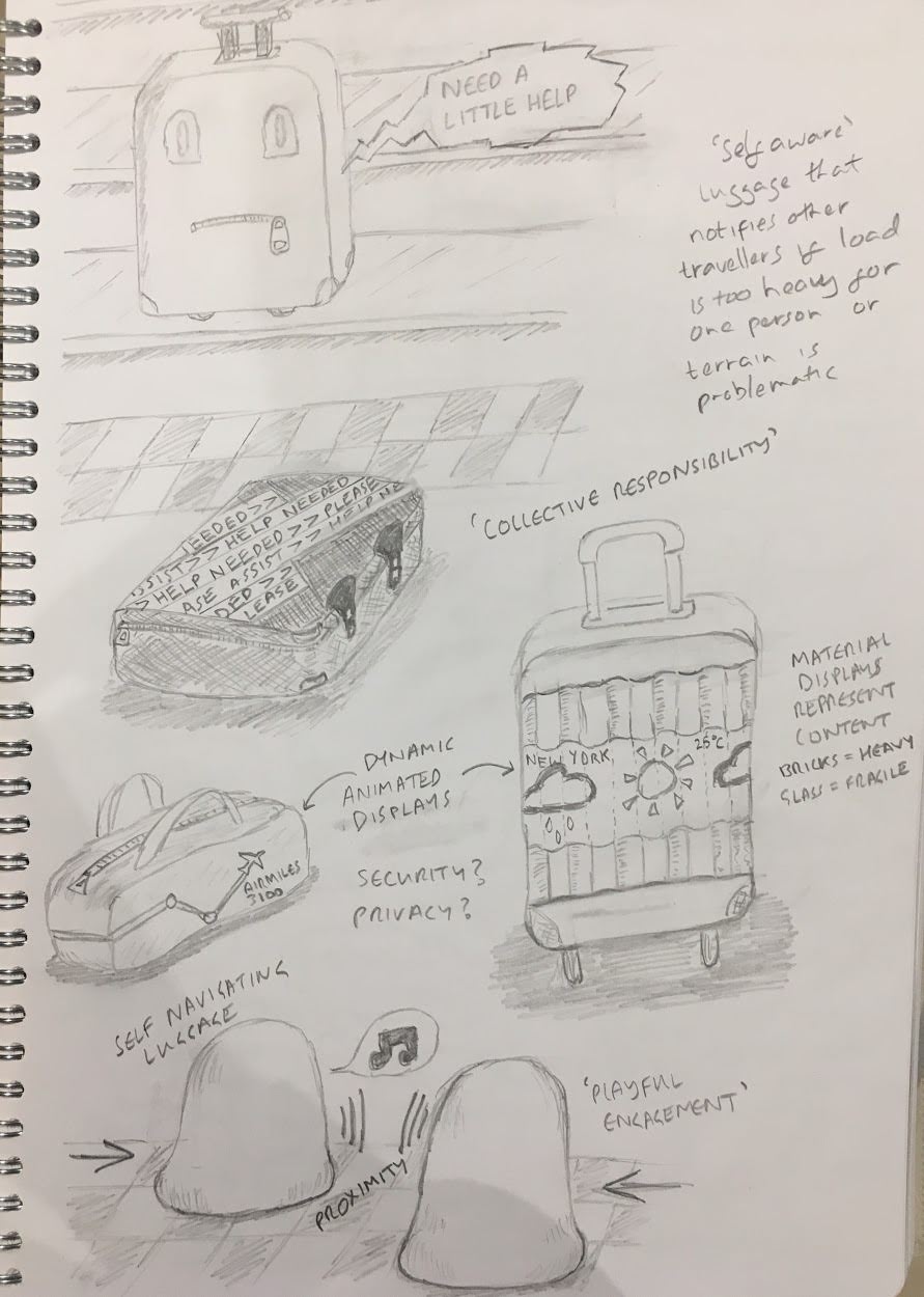 I envisioned autonomous luggage that would alert of disruption or assistance needed to encourage a sense of collective responsibility, and food delivery systems that would autonomously deliver hot meals to people living on the streets.