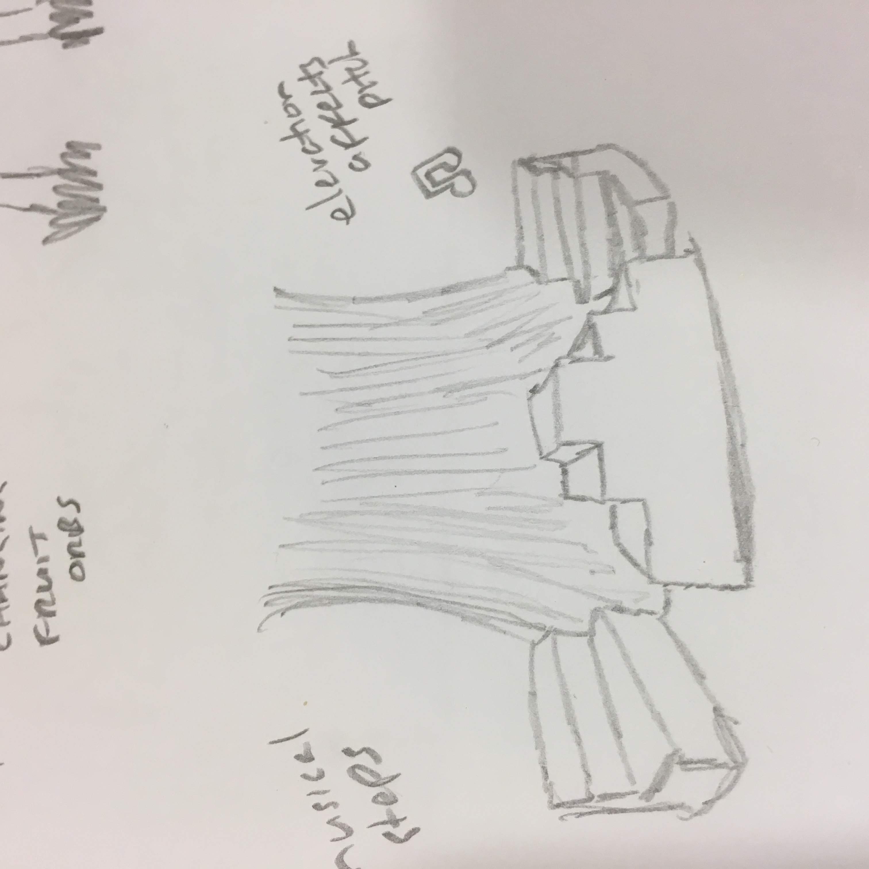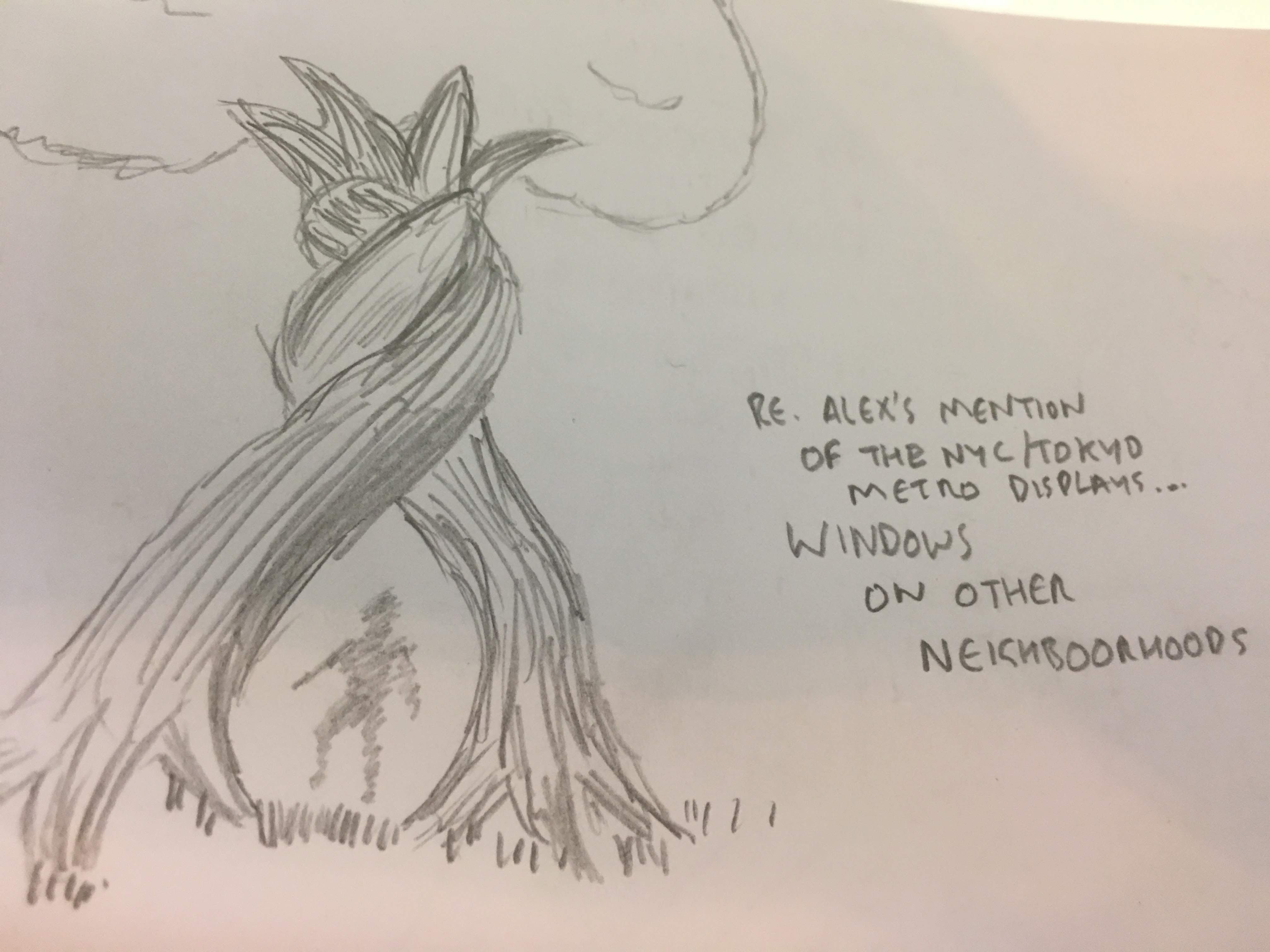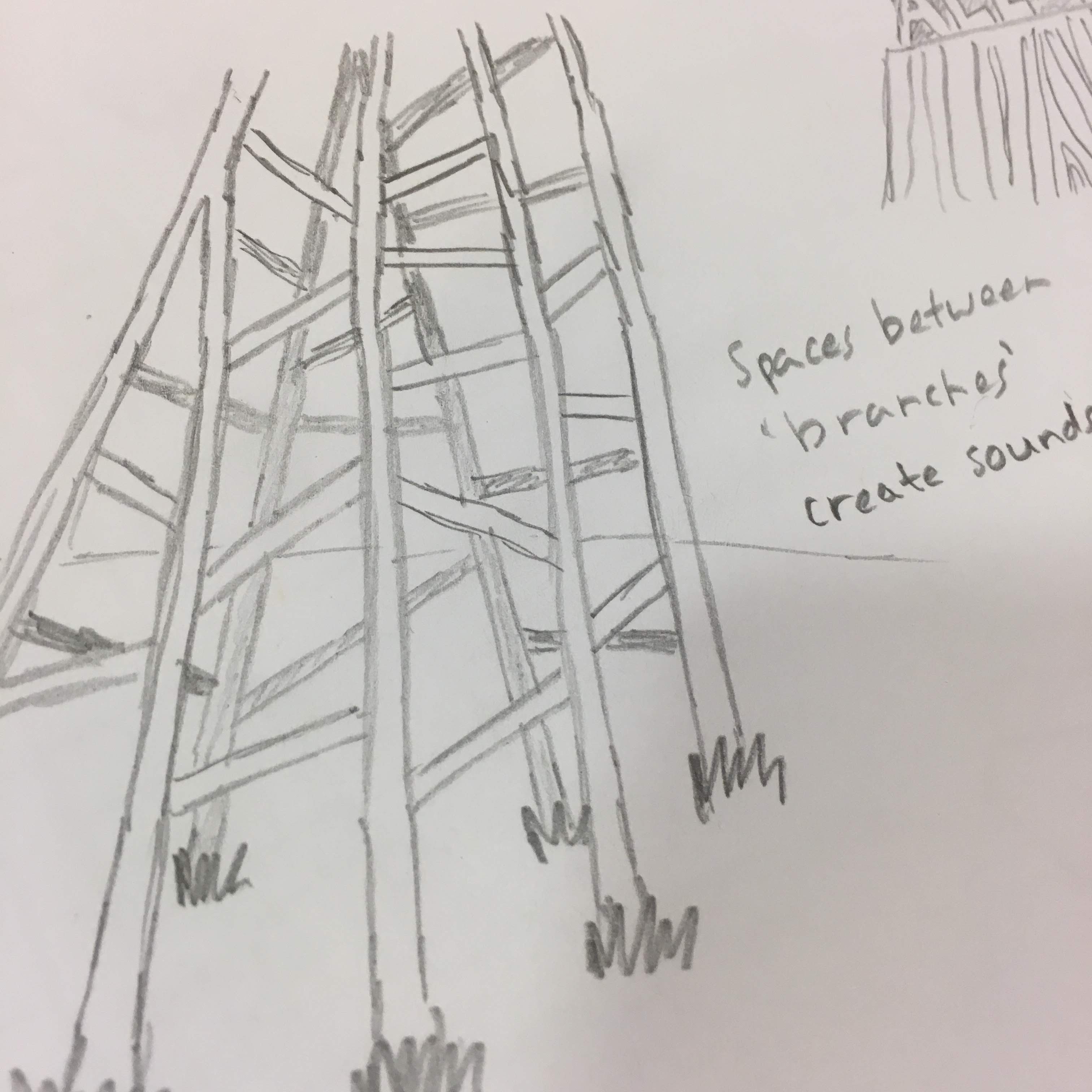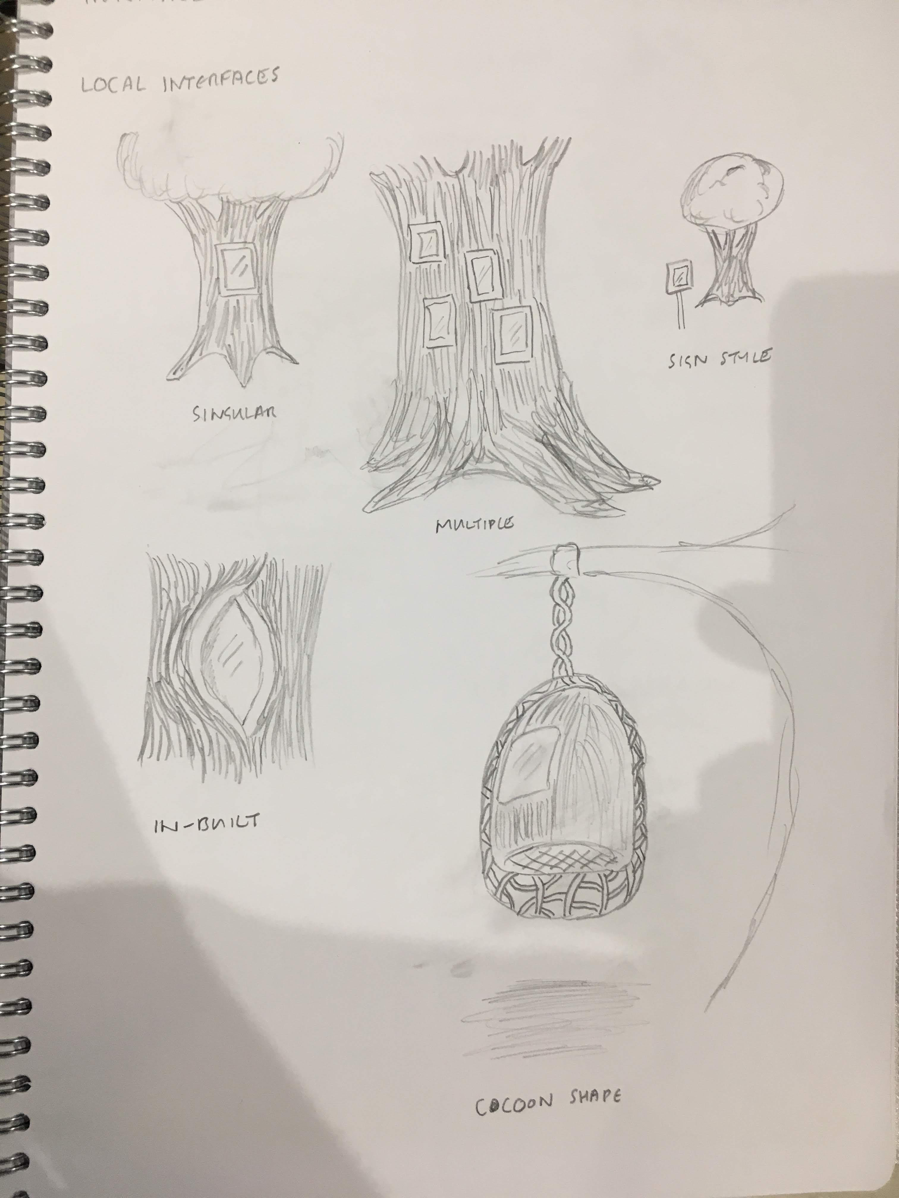 While we initially considered screens - and I made sketches of ways of incorporating screens into the tree - I moved away from this to approaches that felt more natural, discreet and playful.
