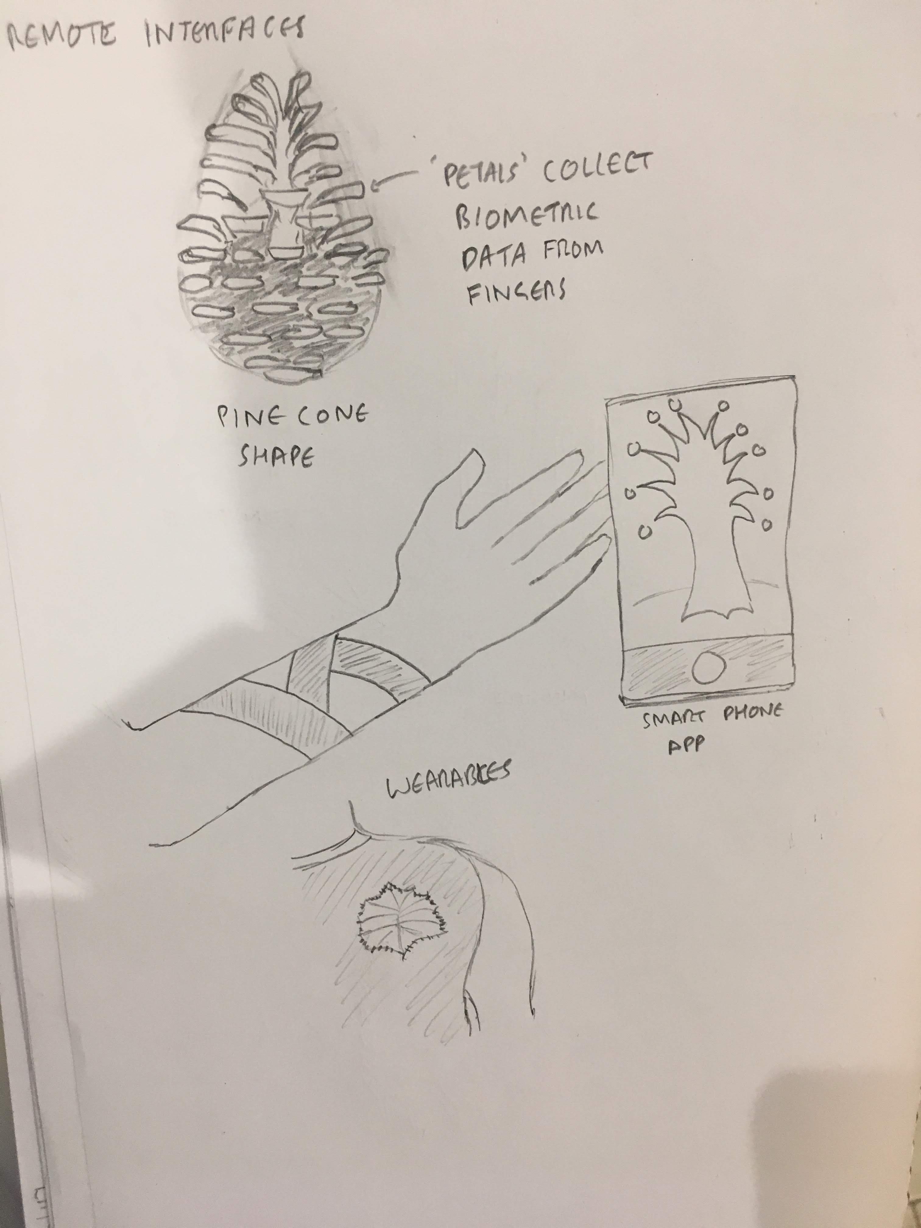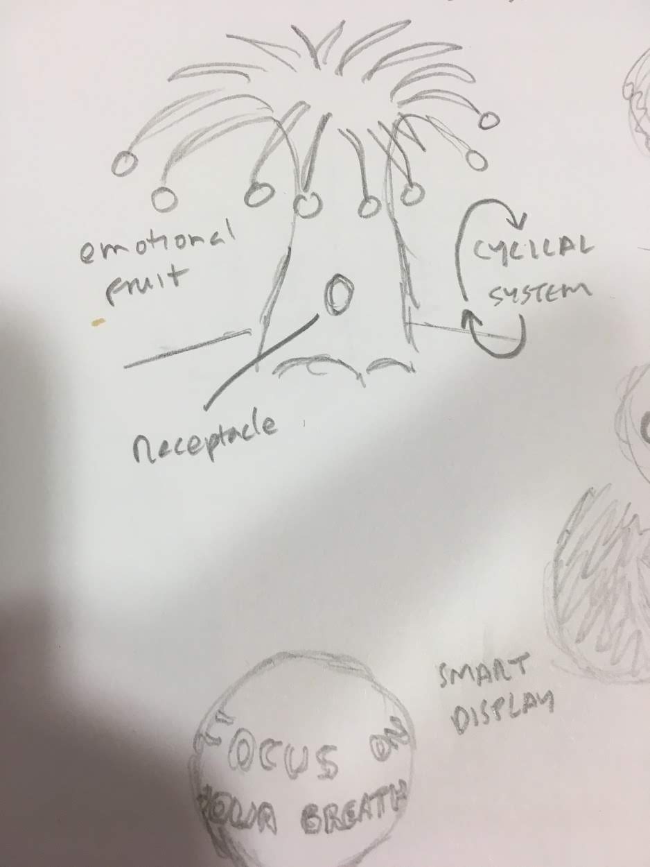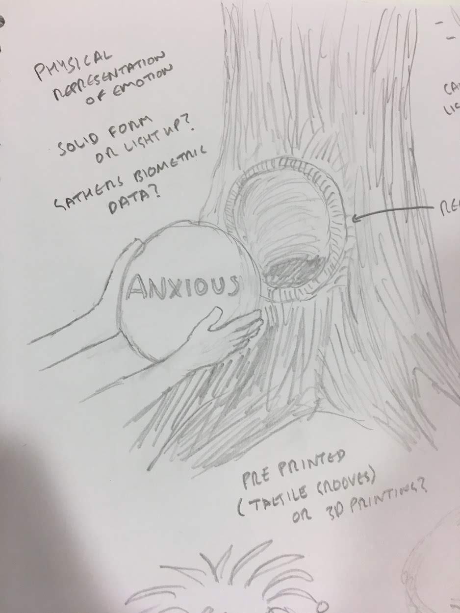 I produced several sketches of different tactile ways of interacting with the mood tree, including different textures, sensory outputs, and ways of using different artefacts with the tree.