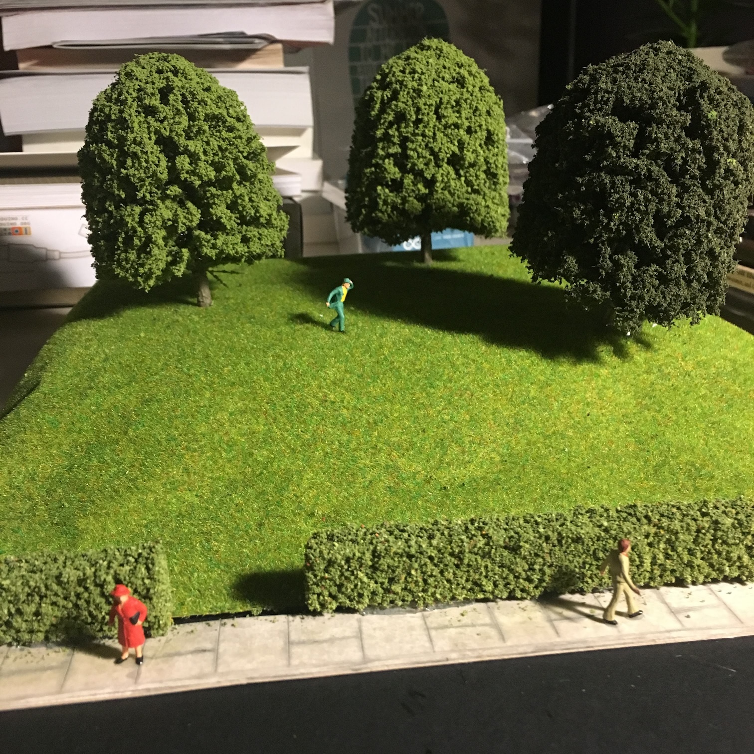 I also scratch built a scale model of a park from cardboard, sponge and props to help us visualise the tree's place in the community.